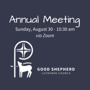 The Annual Congregational Meeting will take place on Sunday, August 30 at 10:30 am, via Zoom.